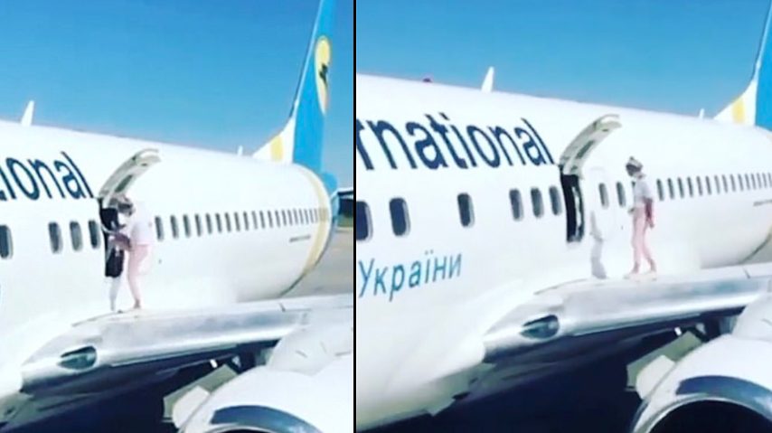 Una donna cammina sull'ala dell'aereo di un volo della Ukraine International Airlines, appena il velivolo atterra a Kiev. Secondo quanto si apprende, si sarebbe difesa dicendo di "avere caldo" e così ha aperto il portellone di un'uscita di sicurezza appena l'aereo si è fermato. Un gesto che le è costato molto caro: è stata multata e bandita a vita dalla compagnia aerea.