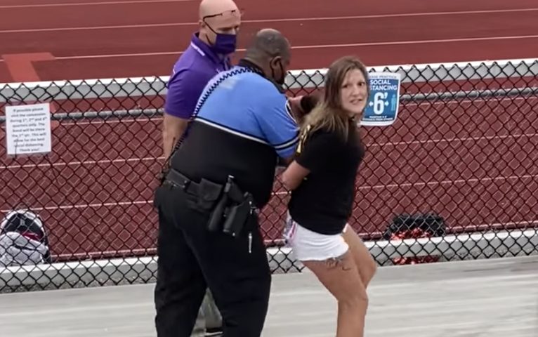 Immagini che stanno facendo il giro del mondo, mostrano una donna che durante una partita di calcio di una high school, è stata allontanata con la forza da un agente perché non indossava la mascherina. Il poliziotto ha ammanettato la donna prima di portarla via.