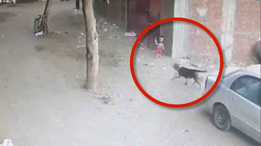 Un cane aggredisce un bimbo in strada e trova l'aiuto insperato di un gatto; il felino distrae il cane attirando le sue attenzioni su di sé: fortunatamente anche lui successivamente scappa via evitando brutte conseguenze.