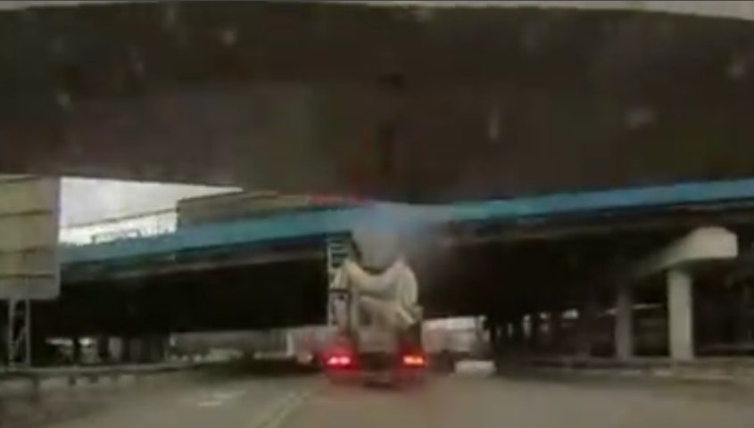 Mosca, una betoniera accelera nei pressi della trave di cemento e la colpisce e poi viene giù. Fortunatamente nessuno è rimasto ferito