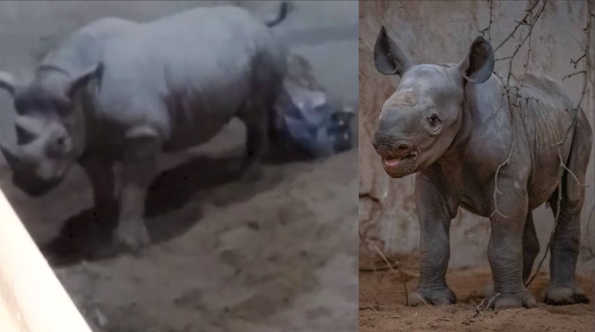 Cucciolo di rinoceronte viene alla luce, il momento del parto è emozionante