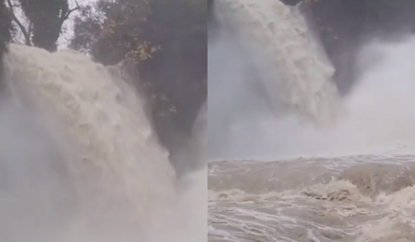 Cascata pericolosamente in piena nel centro di Isola Liri