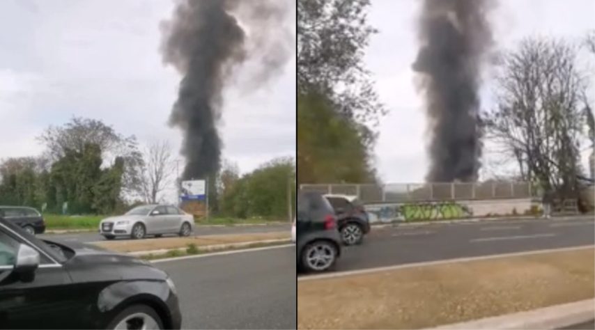 Roma, grosso incendio in Via del Foro Italico. Una colonna di fumo nero era visibile già a chilometri di distanza.
