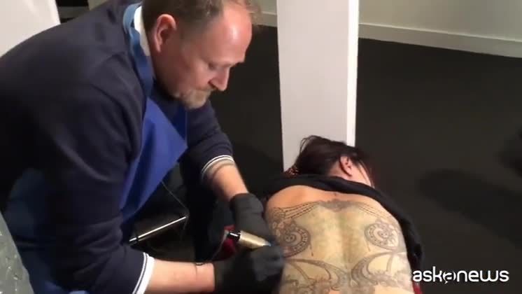La performance chiude la personale al Complesso Vittoriano a Roma Roma, (askanews) - Tra le modelle tatuate esposte come "opere d'arte viventi" per la chiusura della mostra "Marco Manzo" al Complesso del Vittoriano-Ala Brasini a Roma, c'era anche Asia Argento. In un video si vede l'attrice e regista mentre Manzo la tatua sulla schiena. "Sapete cosa provo ora? - dice Asia in inglese - provo piacere. Sapete perché? Perché sono la prima donna o uomo ad essere tatuata in un museo molto importante". Manzo ha ultimato dal vivo il tatuaggio sulla schiena di Argento, utilizzando la celebre macchinetta in oro Cheyenne pen gold "Arte per fare Arte", usata anche per eseguire le sue celebri sculture. Si è conclusa con questa performance la mostra del tatuatore Marco Manzo, celebre per il suo stile ornamentale e che nel tempo ha portato il tatuaggio in alcuni dei più famosi musei d'arte contemporanea e nelle loro collezioni. La personale di Roma ha accolto oltre 10.000 visitatori. Numerose le modelle tatuate da Manzo, esposte come opere d'arte viventi: all'interno di una teca di cristallo, sedute su bianchi cubi, o incorniciate come tele, hanno incantato nei loro abiti scuri e coi loro raffinati tatuaggi il numeroso pubblico presente.