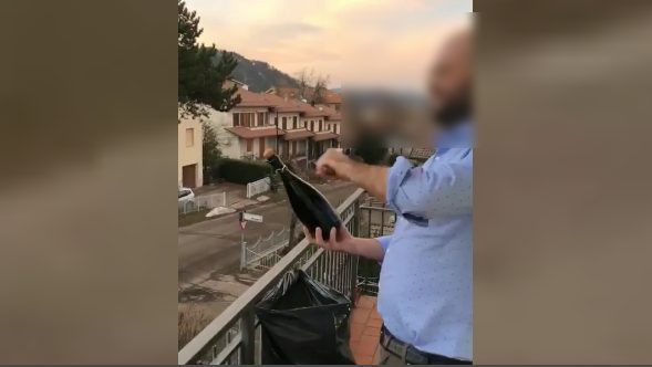 Un colpo secco alla bottiglia ma nel modo sbagliato: invece di rimuovere il tappo, finisce per far cadere la bottiglia al piano di sotto
