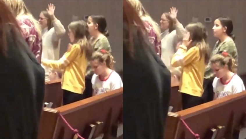 Balla la macarena in chiesa durante la preghiera: la bambina viene ripresa da uno dei presenti