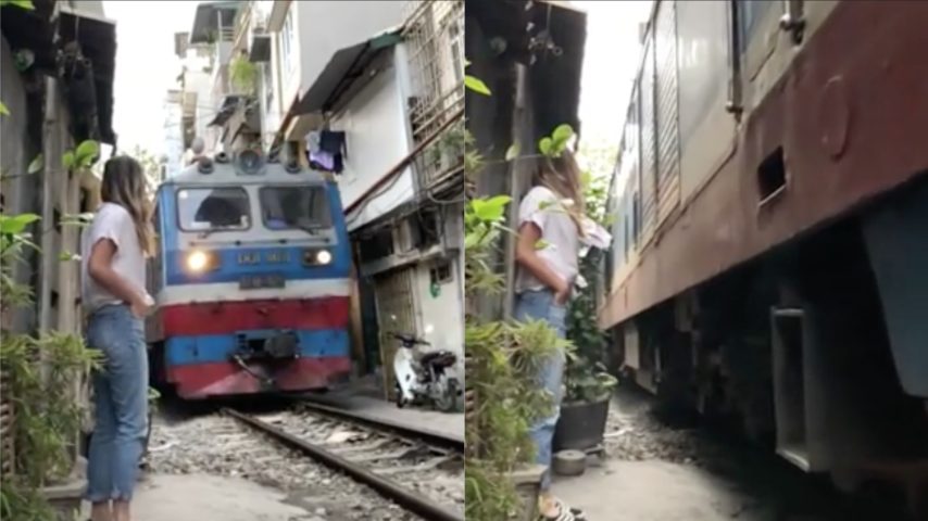 Vietnam, questo treno passa due volte al giorno e i binari attraversano una zona abitata. Al passaggio del treno si vede infatti quanto vicino passi all'ingresso delle abitazioni: la scena è assurda.