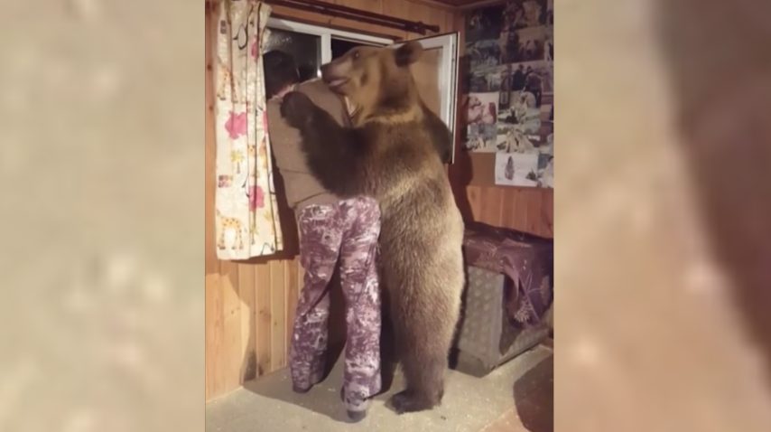 L'orso entra in stanza e abbraccia l'uomo alla finestra: da non credere