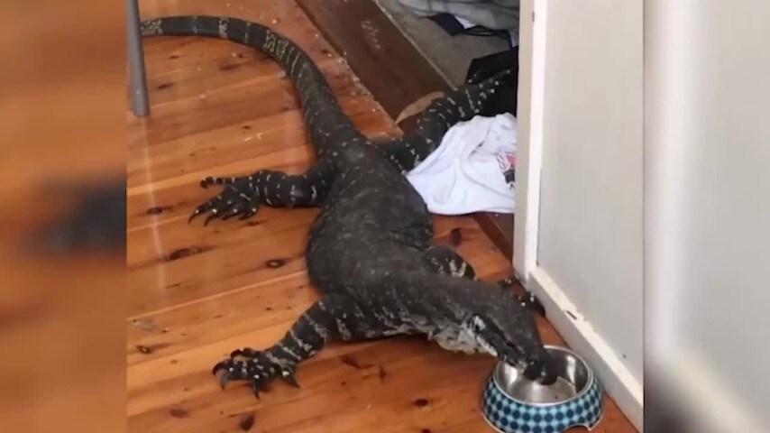 Una famiglia ha trovato in cucina una gigantesca lucertola affamata mentre mangiava il cibo dei gatti. Si tratta di una goanna del genere Varanus di cui sono note circa 30 specie, 25 delle quali si trovano in Australia. Questo variegato gruppo di rettili carnivori ha dimensioni molto grandi, come mostrano queste immagini: il rettile trovato in questa cucina è di almeno due metri. La coda del goanna può essere molto pericolosa quando oscilla, proprio come quella di un coccodrillo: persone e cani in alcuni casi sono rimasti gravemente feriti o uccisi.