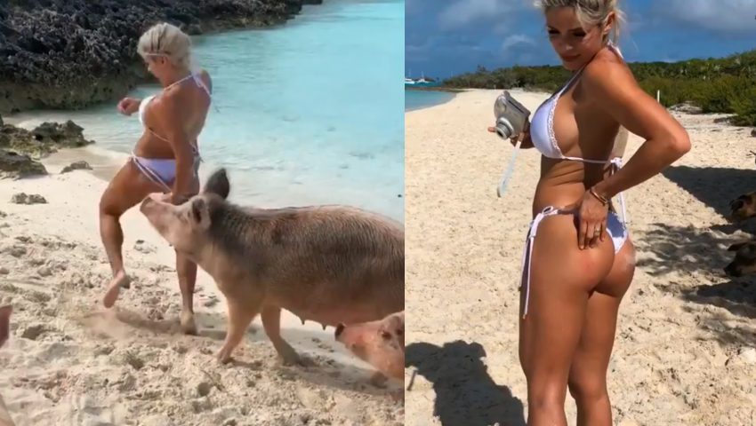 Modella di Instagram morsa sul lato B da un maiale mentre è in vacanza alle Bahamas