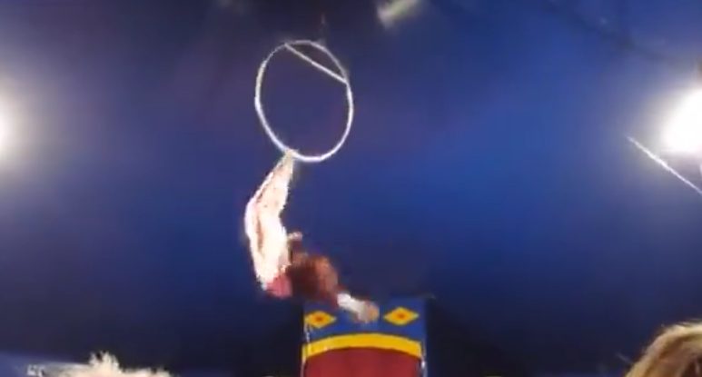 Grave incidente al circo: l'acrobata cade dal cerchio aereo