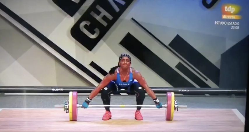 Gaelle Nayo Ketchanke stava tentando di sollevare 110kg nella categoria 76kg femminile durante l'evento a Batumi, in Georgia.Al terzo tentativo di sollevamento, il suo braccio sinistro si piegò e cedette sotto il peso.