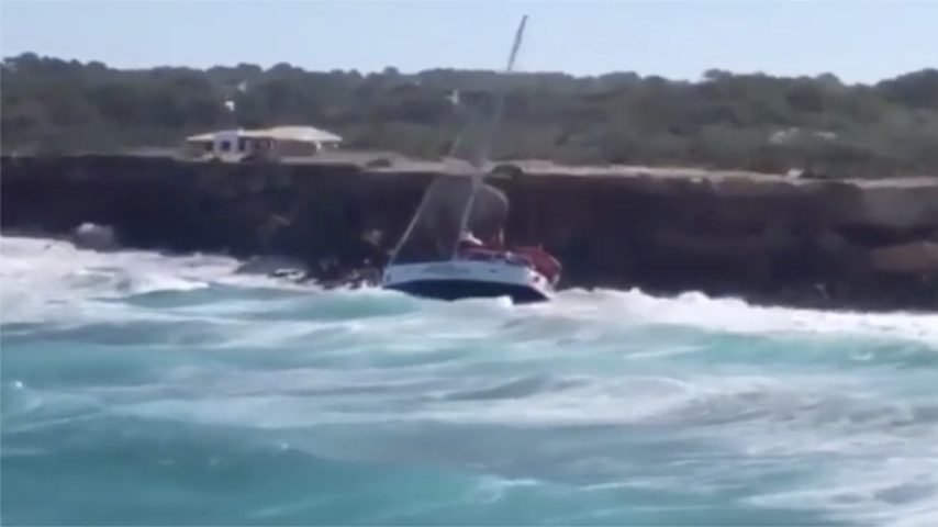 Paura in mare, quando una barca è stata spinta contro una scogliera a causa del forte vento. Le onde alte sei metri l'hanno portata a scontrarsi con la scogliera.