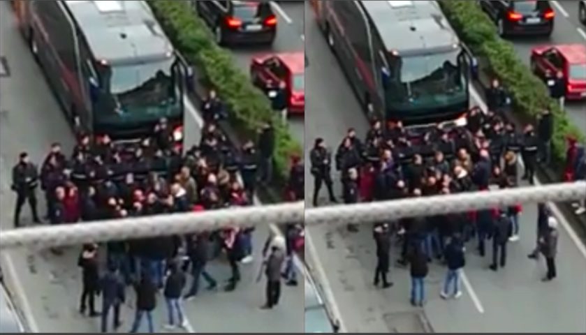 Gli ultras del Genoa bloccano il pullman della squadra dopo il derby della Lanterna perso contro la Sampdoria. Fortunatamente la situazione è tornata alla normalità dopo qualche momento di tensione.