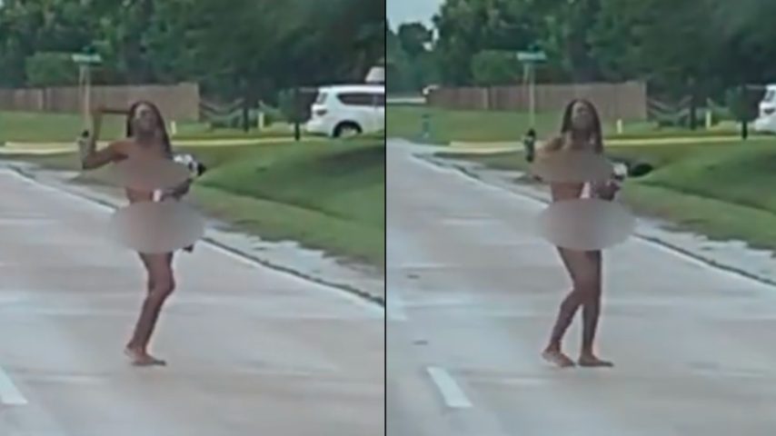 Donna senza vestiti blocca il traffico e poi fa un gesto volgare