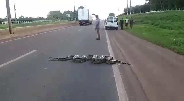 Brasile, gli automobilisti si fermano e restano pietrificanti davanti a ciò che vedono. Un'anaconda di 5 metri attraversa la strada e arriva tranquillamente alla carreggiata opposta.