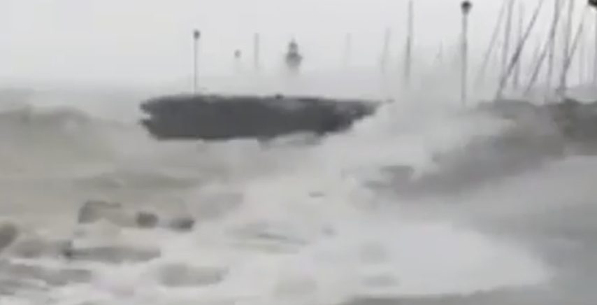 La burrasca si abbatte sul Lago di Garda: le onde sbattono sul porto di Desenzano