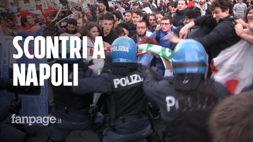 E' partito alle 18 il corteo convocato dai centri sociali contro la presenza a Napoli del Ministro dell'Interno Matteo Salvini che ha presenziato il comitato per l'ordine pubblico e la sicurezza in Prefettura. Il leader della Lega avrebbe dovuto tenere un comizio in piazza a Napoli in vista delle elezioni europee del 26 maggio, ma pochi giorni prima ha deciso di annullare l'iniziativa elettorale. Il corteo di protesta si è invece tenuto lo stesso. La Questura ha consentito ai manifestanti di arrivare fin nei pressi della Prefettura dove si teneva il comitato per l'ordine pubblico e la sicurezza, ma a pochi metri della Prefettura il corteo è stato fermato. Al tentativo dei manifestanti di proseguire è partita una carica della polizia che ha fatto indietreggiare i manifestanti. Negli scontri un funzionario della Questura di Napoli, travolto dalla carica dei suoi uomini, come si vede nelle immagini di Fanpage.it, è rimasto ferito riportando una ferita alla testa. E' stato poi soccorso dal personale del 118.