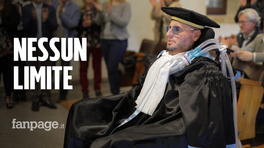Antonio Tessitore da più di 15 anni è affetto dalla Sla, malattia neurodegenerativa che non lascia scampo. Ma non a lui, che anche su una sedia a rotelle e senza potersi muovere o parlare, si è laureato in Economia Aziendale. A Napoli, all'Universita' telematica Pegaso, con una tesi in Diritto tributario su "L'attivita' di accertamento fiscale. Presupposti e tipologie", Antonio ha concluso il suo percorso di studi. Relatore il professor Rosario Bianco. Il voto finale e' stato di 110 e lode. "Ho voluto fortemente questa laurea - dice Tessitore - perche' la Sla mi ha tolto la possibilita' di muovermi e di parlare ma non la voglia di lottare. E non voglio fermarmi qui. Ho deciso di completare il percorso di studi anche con la laurea biennale perche' ho un sogno: dare il mio contributo a un'Asl per continuare la lotta per i diritti delle persone meno fortunate". Antonio ha poi ringraziato il questore di Caserta Antonio Borrelli e il Dirigente del Commissariato di Aversa Vincenzo Gallozzi per aver messo a disposizione un'unità del commissariato per poter essere presente al giorno più importante della sua vita