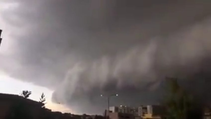 Spettacolare shelf cloud a Taranto, il fenomeno delle nuvole a mensola. È causato da un fronte di aria fredda che generalmente anticipa una formazione temporalesca.