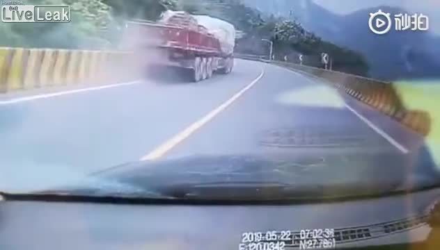 Un autotrasportatore cinese, su una strada di Wencheng è sceso dal tir senza mettere il freno a meno e lasciando andare il mezzo in discesa. Per fortuna la macchina dietro è riuscito a schivare e prima che fosse troppo tardi, l'uomo ha fermato il grosso tir.