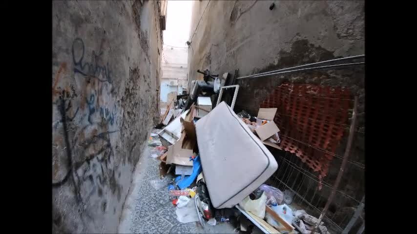 Le immagini girate dai volontari del Comitato Diritti Essenziali oggi, 4 agosto, documentano le condizioni di vico Piscicelli, a Forcella, nel centro storico napoletano: è una discarica abusiva in cui viene buttato di tutto, dai materassi ai mobili, per finire coi sacchetti della spazzatura. C'è così tanta immondizia che è impossibile passare.