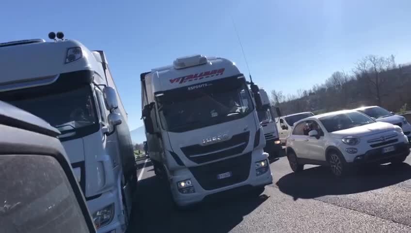 Protesta dei ristoratori con circa 500 veicoli che stanno bloccando l'autostrada Caserta-Roma: nelle immagini i tir suonano i clacson e camminano lentamente. I ristoratori protestano contro le norme anti-Covid, che hanno introdotto numerose restrizioni per la categoria. Inoltre, il nuovo Dpcm del Governo, che sarà varato a breve, vuole introdurre il divieto di asporto dopo le 18 invece che dopo le 22.