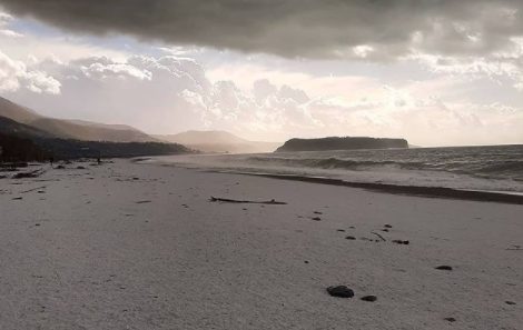 Incredibile a Praia a Mare, la spiaggia è ricoperta dalla neve