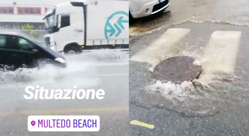 Nubifragio a Genova: l'acqua esce dai tombini e allaga le strade