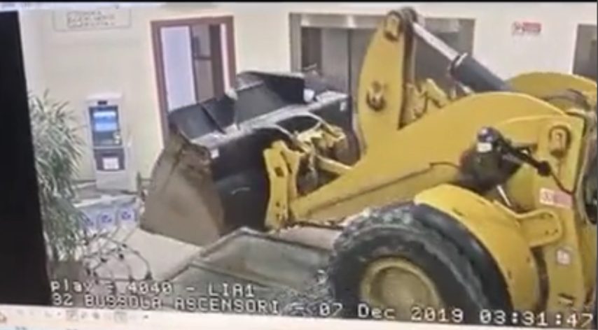 Bancomat sventrato con la ruspa: incredibile colpo in banca