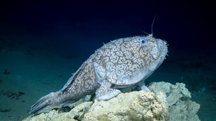 La rana pescatrice di Schaefer (Sladenia shaefersi) è un pesce rarissimo in grado di usare le pinne come se fossero dei piedi, come mostrano queste immagini. Può misurare fino a un metro e mezzo e pesa circa 50 kg: è stato scoperto a circa 1000 metri di profondità, nei fondali di una piccola isola del Golfo del Messico.