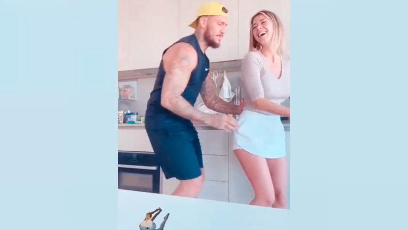 Diletta Leotta balla in casa con il suo compagno Toretto, Daniele Scardina che però a un certo punto preferisce una scopa.