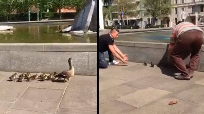 Torino, gli anatroccoli non riescono a rientrare in acqua: gli automobilisti li aiutano