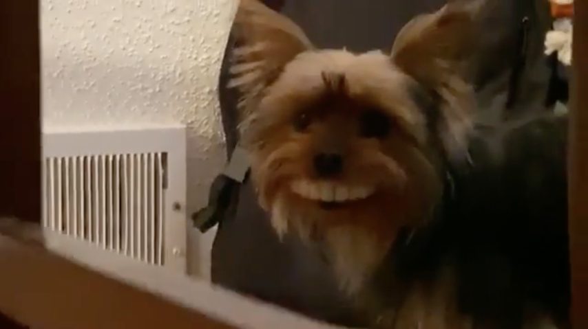Il video del piccolo Yorkshire Terrier che ruba la dentiera al padrone e scappa per la casa con un sorriso a 32 denti è diventato subito virale.