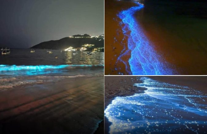 Prima non era raro che lungo le spiagge messicane si potesse vedere quest'effetto, ma con gli anni con le acque sempre più inquinate è diventato sempre più raro. Ora in un periodo in cui quasi tutto è fermo, quindi anche l'inquinamento ha avuto una battuta d'arresto, sulla spiaggia di Puerto Marqués ad Acapulco in Messico, l'acqua è ricominciato a illuminarsi di notte. Il tutto per via del plancton bioluminescente: infatti l'acqua brilla e si colora di blu mentre le onde si infrangono sulla sabbia. Un raro evento prodotto dalla “reazione biochimica” innescata dai microorganismi bioluminescenti depositati: il tutto anche per l'assenza dell'uomo che affollava spiagge e acqua.