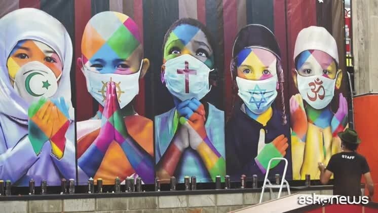 Rappresentate da bambini che pregano; il ricavato in beneficenza San Paolo (Brasile), 30 apr. (askanews) - Eduardo Kobra, un artista brasiliano famoso in tutto il mondo per i suoi murales colorati, ha ripensato la sua arte ai tempi del lockdown e nella sua San Paolo ha dipinto un murale in cui riunisce le cinque maggiori religioni del mondo, rappresentante ciascuna da un bambino che prega. Un appello all'unità e alla solidarietà. "L'idea è di mostrare che siamo tutti interconnessi, interdipendenti, così ho scelto di unire tutte le cinque principali religioni attraverso dei bambini, in preghiera, che chiedono a Dio di illuminare scienziati, dottori, chiunque" ha spiegato. "Ho anche fatto una serie di copie firmate e numerate di questo lavoro originale, con l'obiettivo di donare il 100% del ricavato. Ho invitato le persone a donare", ha aggiunto.