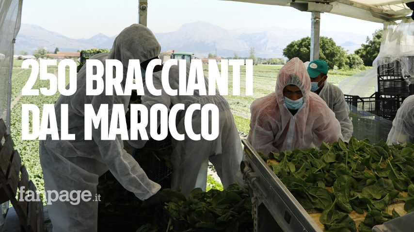 Sono arrivati ieri, con un volo charter da Casablanca, i primi 124 braccianti marocchini che andranno a lavorare per 41 aziende agricole del Fucense, in Abruzzo. Oggi ne arrivano altri 124. Si tratta di manodopera essenziale per il periodo della raccolta. I lavoratori, tutti stagionali con anni di esperienza in Italia, erano stati bloccati nel Paese di origine a causa dell'epidemia di coronavirus. "Abbiamo preso anche braccianti italiani, ma non hanno la stessa esperienza né la stessa voglia" spiega Marco Verdecchia, titolare dell'omonima azienda agricola. "È un grande risultato", argomenta Stegano Fabrizi, direttore di Confagricoltura Abruzzo, all'arrivo dei lavoratori all'aeroporto di Pescara. "Ci siamo trasformati in un'agenzia internazionale, intrattenuto rapporti con l'ambasciata per far sì che questi lavoratori potessero finalmente arrivare. Adesso abbiamo già altre richieste e speriamo di far arrivare, nel complesso, circa 500 braccianti".
