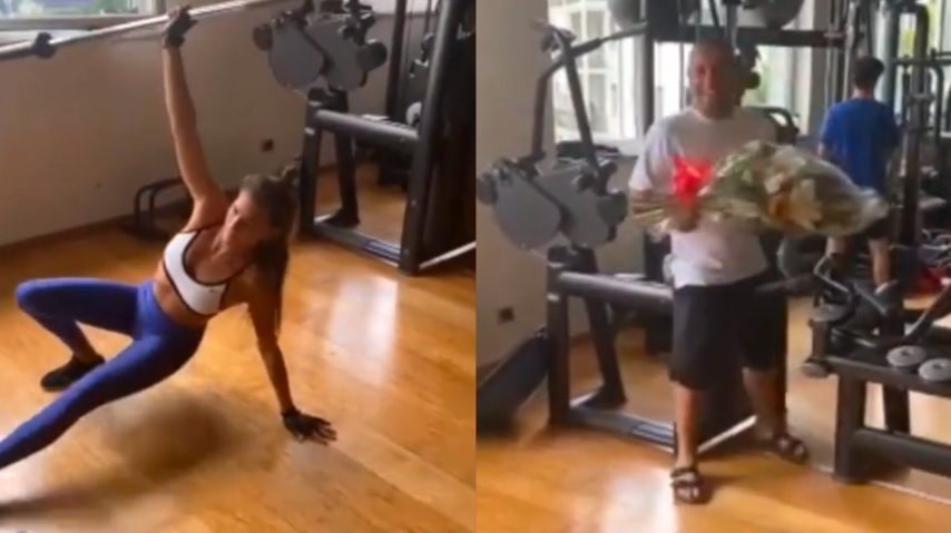 Carolina si allena, Cassano le fa una sorpresa romantica in palestra