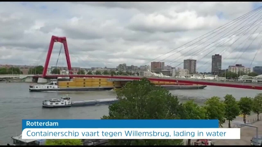 Nelle acque poco distanti dal porto di Rotterdam, una nave cargo da poco salpata, si scontra con uno dei ponti della città. Le pile di container caricate erano troppo alte e una decine cadono in acqua.