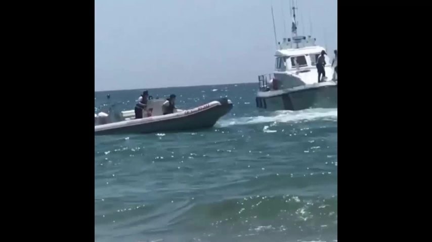 Le immagini mostrano un gommone che non smette di ruotare su se stesso in mare, al largo di Fondi, in provincia di Latina, facendo finire cinque persone in acqua. È stato necessario l'intervento della Guardia Costiera.