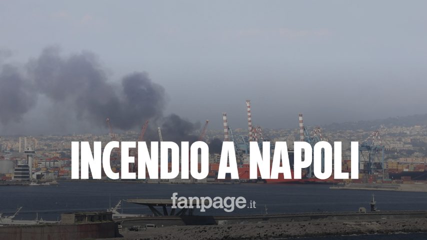 Incendio a Napoli nella zona del porto, colonna di fumo nero visibile da tutta la città