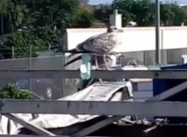 Un video ripreso a Roma, mostra come un gabbiano trasporti involontariamente una bottiglia di plastica, incastrata tra le piume della coda.