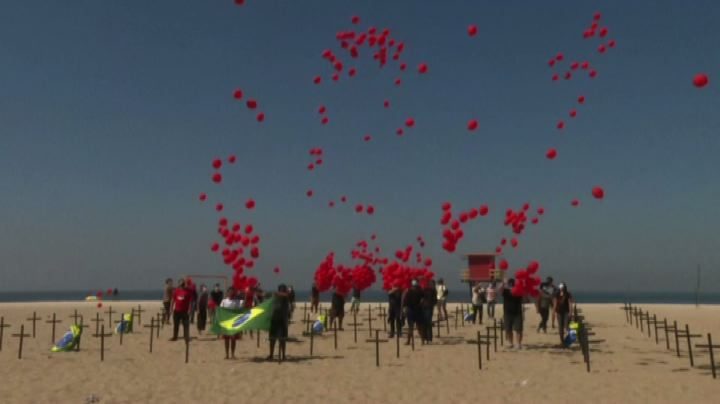 Brasile, palloncini rossi per ricordare 100.000 vittime del Covid