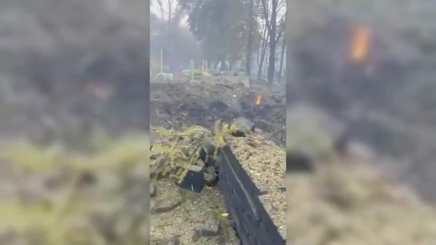 Missili su Kiev, colpito anche un parco giochi: le immagini del cratere accanto alle altalene