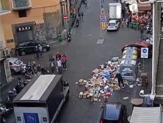 Napoli piena di rifiuti di cartone, al centro storico invasa la strada