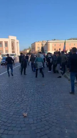 È partito questa mattina il corteo dei nostalgici del Ventennio a Predappio, tra fez, camicie nere, magliette del Duce e tatuaggi in bella vista. Un migliaio di persone si è diretto verso il cimitero di San Cassiano dove è sepolto nella cripta di famiglia Benito Mussolini, nel giorno in cui si commemora il centenario della Marcia su Roma (in realtà il 28 ottobre). Il gruppo ha chiesto ai giornalisti di non stare in mezzo al corteo, organizzato dagli Arditi d'Italia. Durante il concentramento, prima della partenza, qualcuno dei manifestanti ha anche teso il braccio per fare il saluto romano. A un certo punto il gruppo ha intonato 'Faccetta nera'. Il video è stato preso dall'account Facebook di Vivien Mariol.