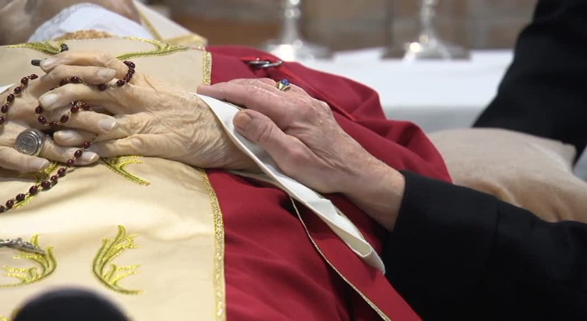 Da Convento Mater ecclesiae a Basilica Vaticana Città del Vaticano, 2 gen. (askanews) - E' stato un rito semplice, come il Papa emerito avrebbe voluto, quello della traslazione del feretro di Benedetto XVI, avvenuto alle 7 di questa mattina dal Convento "Mater Ecclesiae" all'interno della Basilica vaticana. Il triste percorso dal convento, che si trova vicino ai giardini vaticani alla basilica, è durato circa un quarto d'ora. Il breve rito, informa il Vaticano, è stato presieduto dall' Arciprete della Basilica Papale di San Pietro in Vaticano e Vicario Generale di Sua Santità per la Città del Vaticano, Card. Mauro Gambetti, ed è durato fino alle 7.40. Poi è stata ultimata la preparazione della Basilica per l'arrivo dei fedeli in visita al Papa emerito. Copyright_Vatican Media