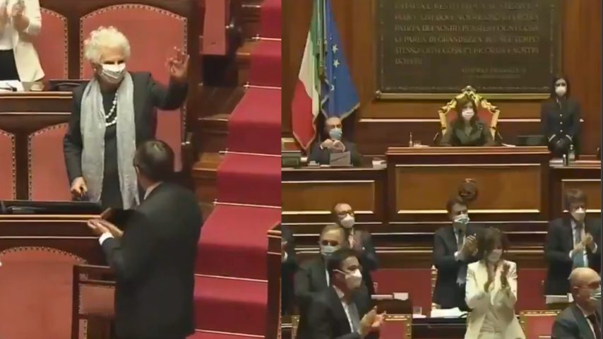 Il momento in cui al Senato arriva la senatrice a vita, Liliana Segre e viene accolta con una standing ovation. Dai banchi si alza un applauso a partire dal premier, Giuseppe Conte.