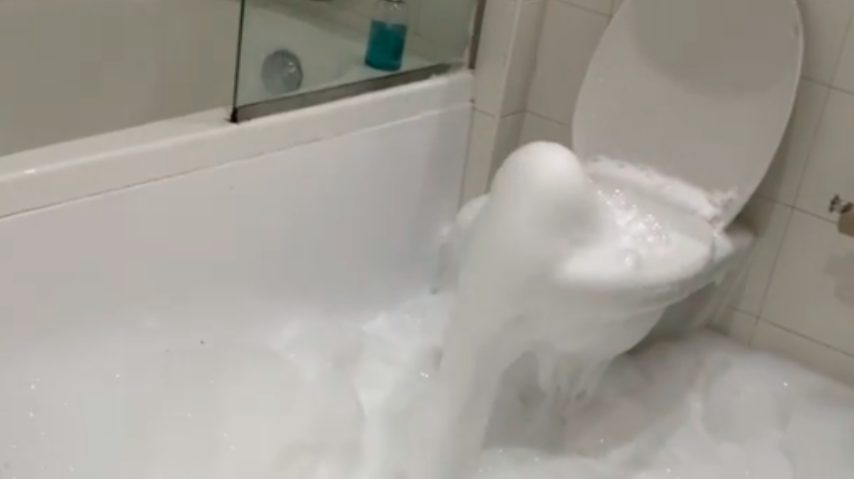 Non si tratta di uno schiuma party quanto di una disavventura capitata in piena notte a un uomo nella sua casa a Manchester. Alle 2 del mattino viene svegliato da un rumore e si accorge che il water in bagno "erutta" schiuma. Un flusso che continua ininterrotto per ore, fino alle 5, e che finisce per invadere anche altre stanze della casa. Secondo il racconto dell'uomo l'idraulico non ha saputo dare una spiegazione al fenomeno. Tuttavia il tutto sarebbe dovuto a un appartamento confinante: "Forse qualcuno in un altro appartamento ha messo dei prodotti che sono arrivati fino al mio bagno".