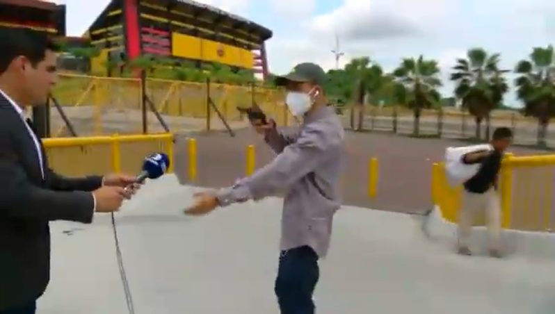 Tutto in diretta tv: un malvivente irrompe durante il servizio del giornalista Diego Ordinola in Ecuador davanti allo stadio Monumental di Guayaquil e si fa consegnare il cellulare da lui e dal suo cameraman. I due operatori dell'informazione poi si lanciano all'inseguimento mentre il ladro tentava di scappare.